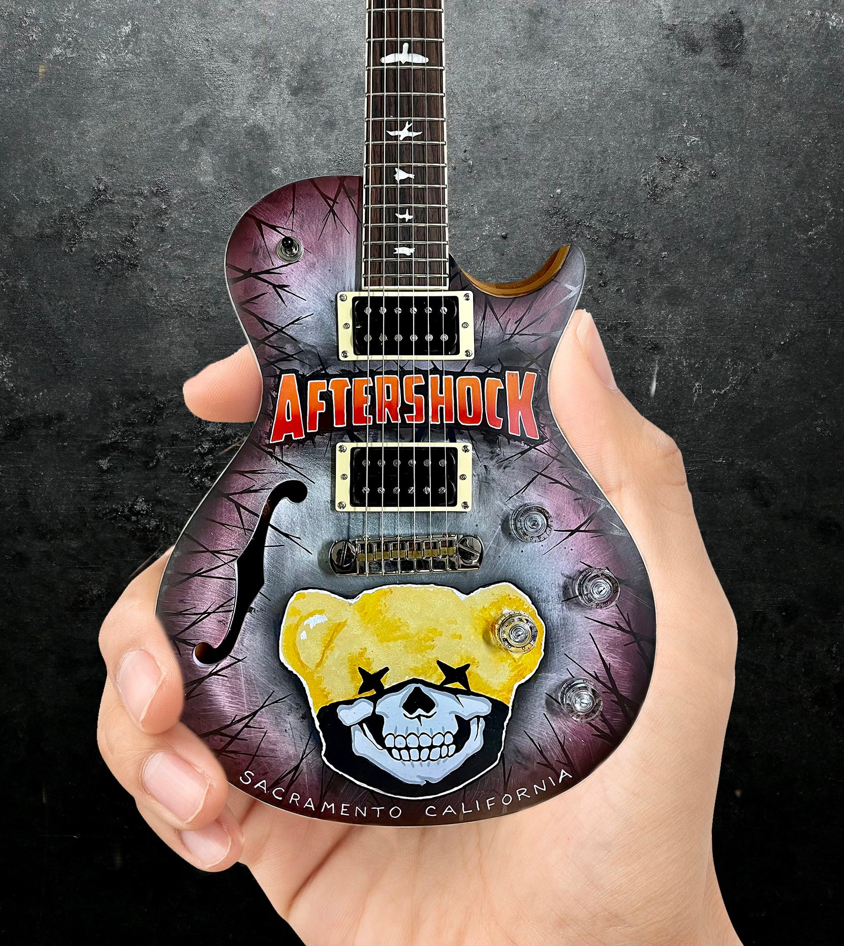Aftershock Minis are back! We have made a limited amount of exact miniature replicas of Ron's custom designed, hand-painted Aftershock guitar - and once they are gone...they are gone!