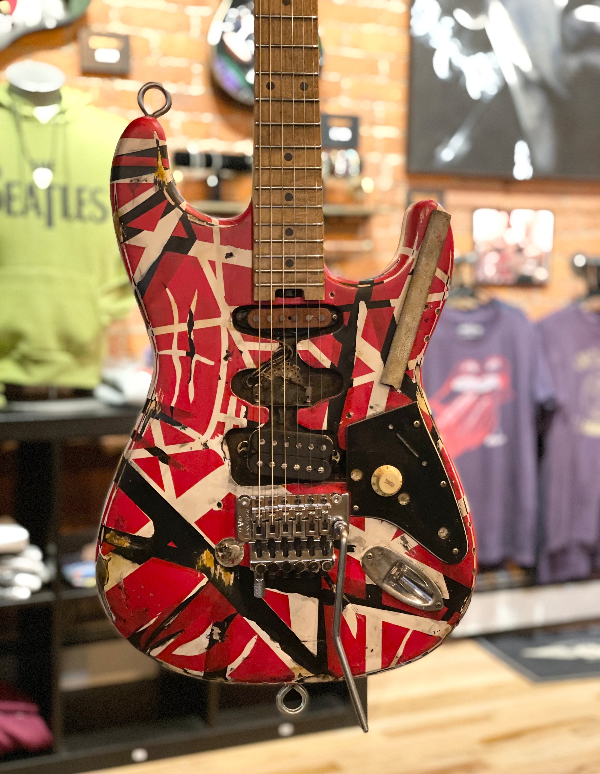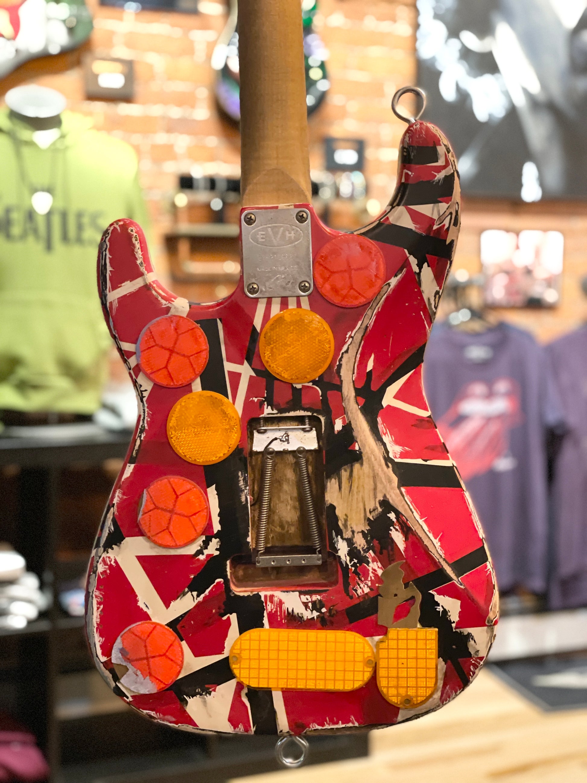Full size, exact replica of Eddie Van Halen's "Frankenstein" guitar. Completely hand crafted and painted.